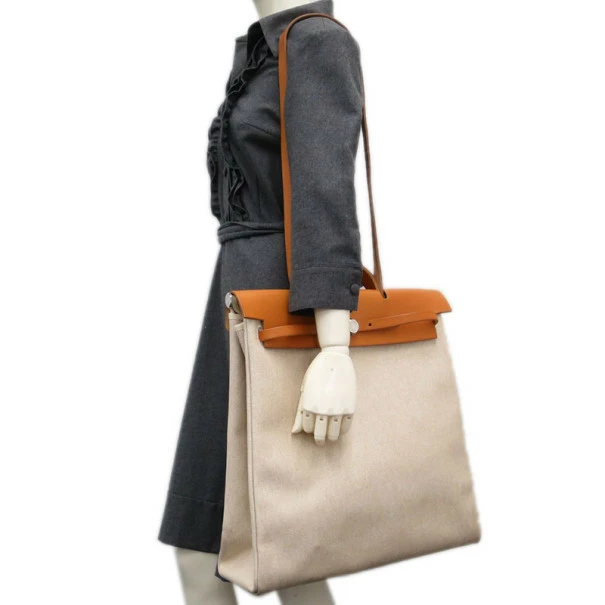Hermes Tan Leather And Beige Toilea Canvas Herbag MM For Women
