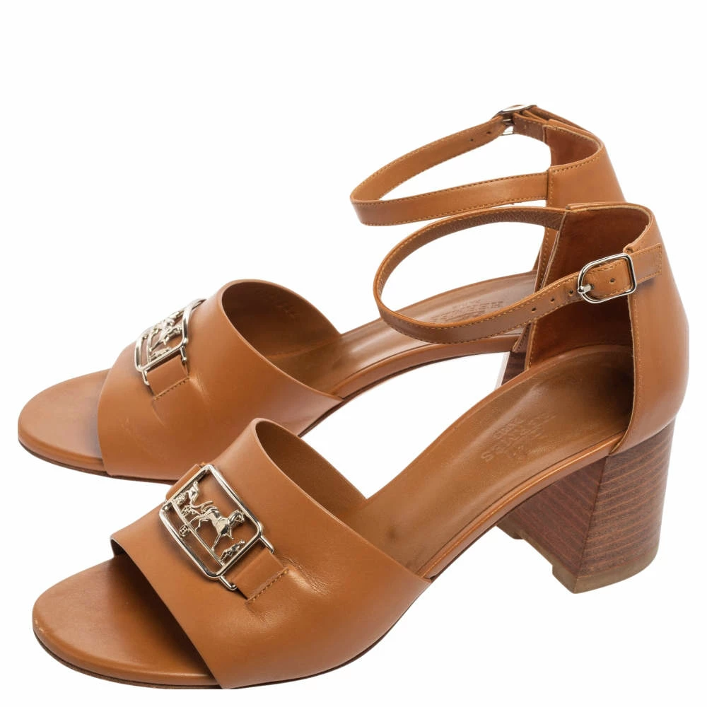 These Viaggio sandals from Hermes speak of beauty in a minimal yet appealing way! They come crafted from leather and styled with single vamp straps that are detailed with silver-tone logo accents. They are equipped with buckled ankle straps and comfortable leather-lined insoles and elevated on 6 cm block heels.