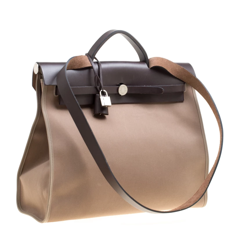 A more practical and simple design from the house of Hermes, the Herbag Zip is popular among women, first for its resemblance to the iconic Kelly bag and second because of its functional design. The bag is an improved version of the original and was released first in 2009. The top of the bag is made from brown leather while the body is rendered in canvas. It has the familiar padlock closure, a handle, and a shoulder strap. The bag also features a spacious fabric interior and a pouch. It is ideal for daily excursions.