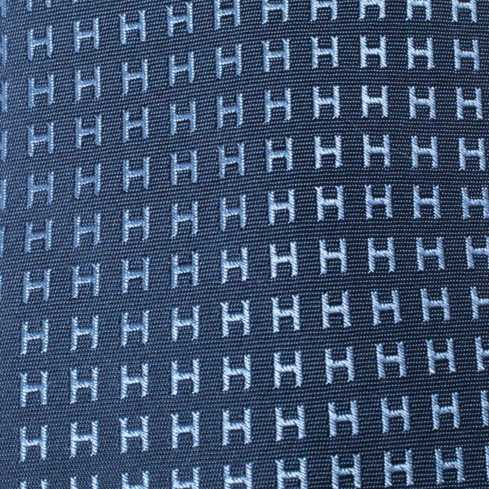 Get a polished look with a smart Hermes tie that is defined by its classy cut. This blue tie is made of 100% silk and features an ‘H’ detailed design pattern. It carries the brand label neatly stitched at the back.