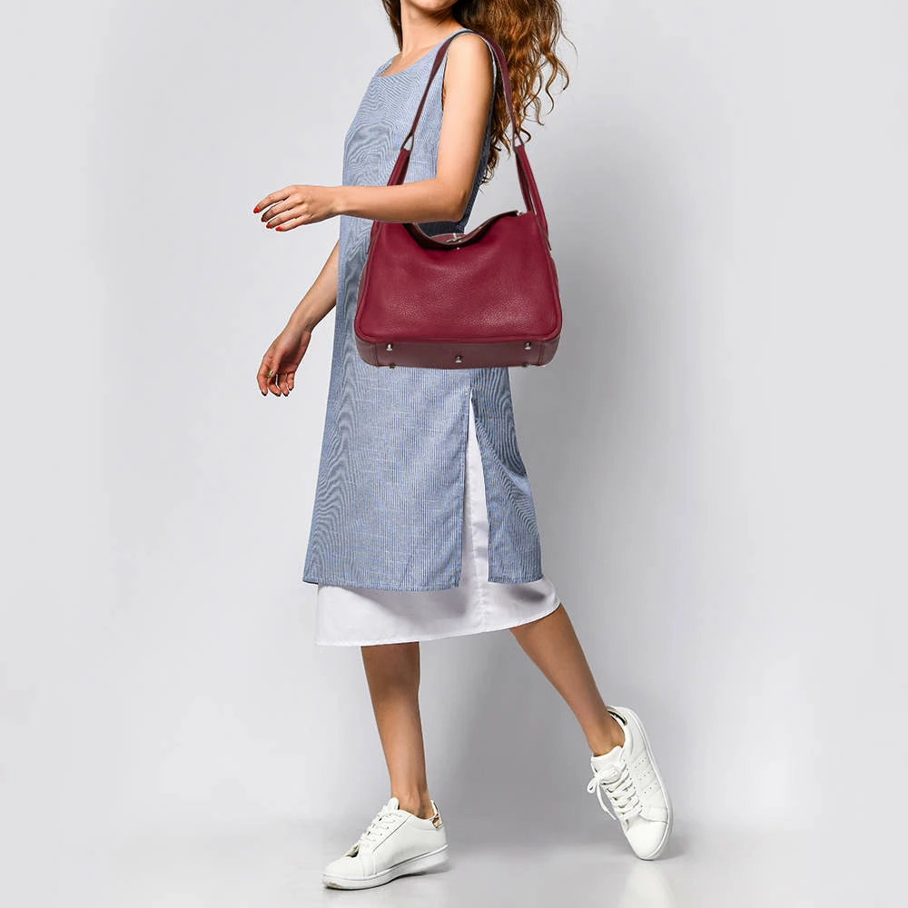 The Hermes Lindy was first designed in 2006 and it is recognized worldwide for its relaxed design. A creation of exemplary craftsmanship, the Lindy sweetly embodies ladylike elegance with a whimsical touch! Exquisitely crafted from Taurillon Clemence leather, the bag has been designed to be carried by hand and on the shoulder. It features palladium-finished hardware, a turn-lock closure on the flap, and protective metal feet at the bottom. The bag has two handles and a leather interior that can easily carry your necessities. Versatile in design, this bag is simply magical and worth your love.