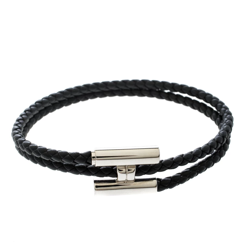 Sometimes, the simplest of designs are the most luxurious. This beautiful bracelet is by Hermes. It has a design of two woven leather straps that end with a palladium-plated clasp which sits as an H, a letter that has long been a signature of the brand.
