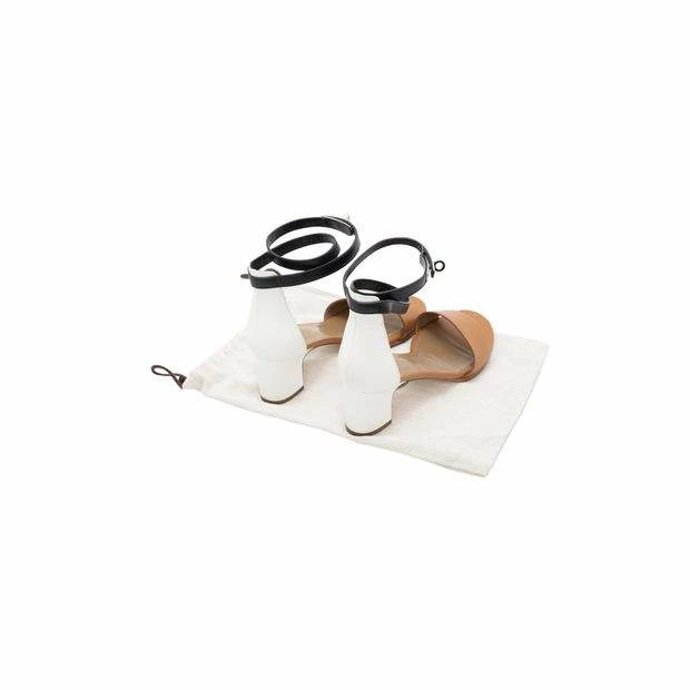 These elegant Hermes Manege wrap sandals showcase a timeless style and polished look. Fashioned in tricolor (white, black, tan) calfskin leather, this stylish pair features a palladium plated Kelly closure on ankle straps. Set on comfortable heels, these sandals effortlessly strike a balance between contemporary and classic.