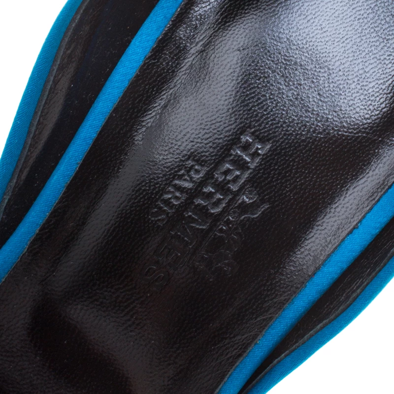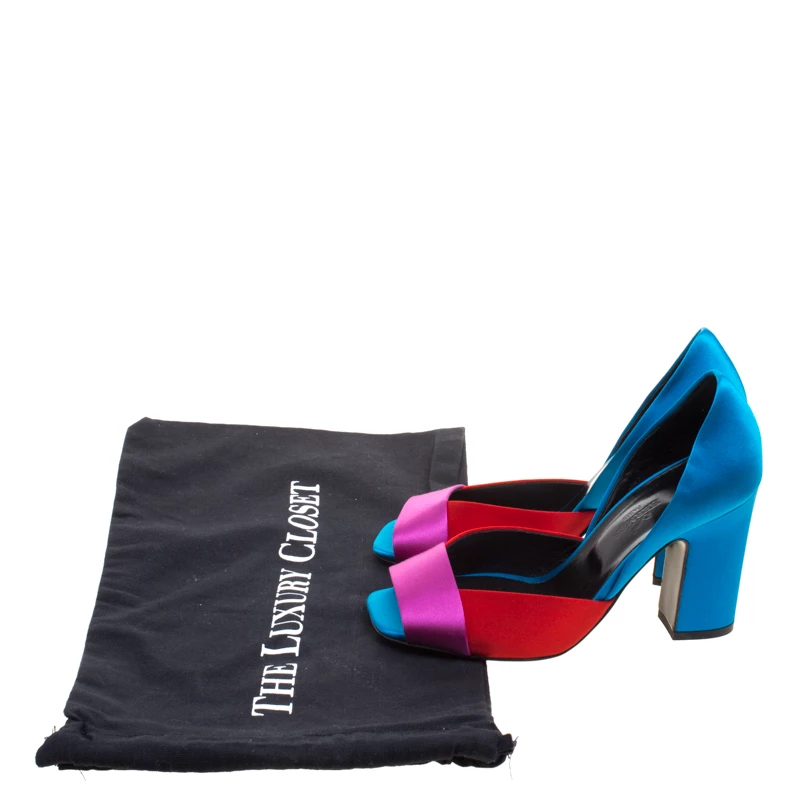 Command attention and admirable gasps from your audience with each step you take in these D’orsay pumps from Hermes. Crafted from satin, they carry open toes and exteriors bursting in three colours. The pair is complete with 9.5 cm block heels and comfortable insoles.