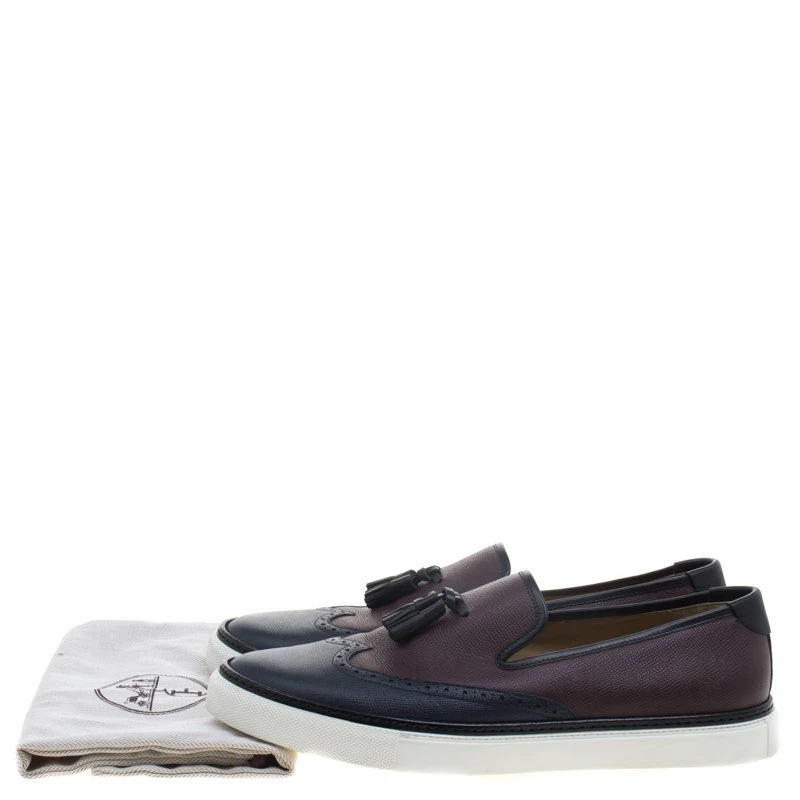 Hermes is known for their sophisticatedly created designs. These two-tone Slip On sneakers have been crafted from quality leather and feature a wing tip, perforated details and little tassels. This pair is complete with rubber soles. Pair them up with slim-fit chinos for a smart casual look.