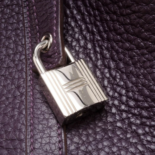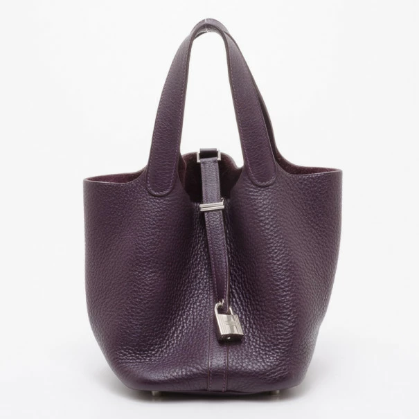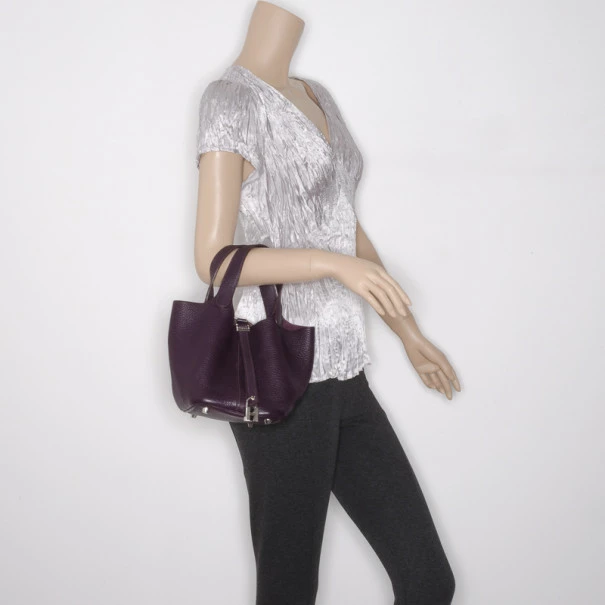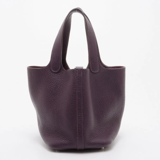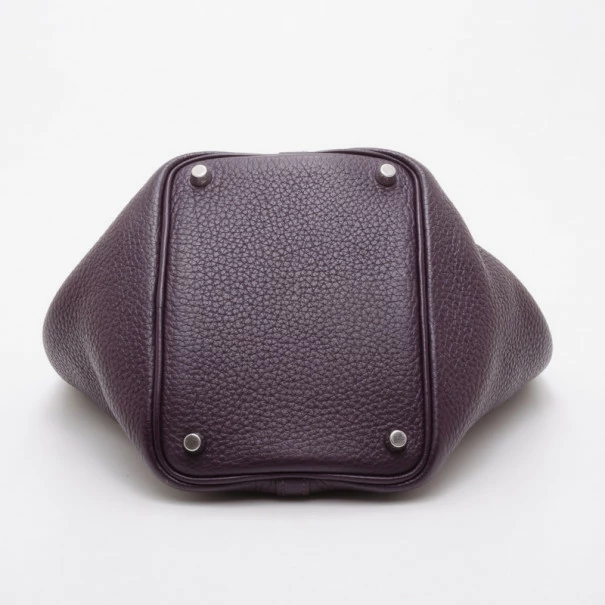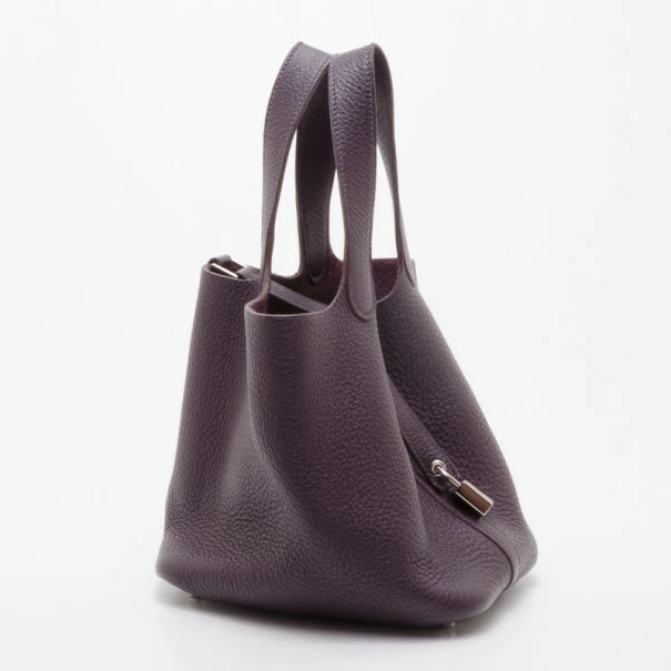 This minimalist and gorgeously colored Picotin by Hermes makes for an unforgettable day bag. Crafted from violet Taurillon Clemence leather, it is simply accented with a silver padlock and double handles. The open suede lined interior is spacious enough for daily essentials. Original Retail Price: US $2,275Condition: Like New(No noticeable marks on the bag. Clean interiors)Dimensions: 23 CM(L) 18 CM(H) 22 CM(W)Handle Drop: 16 CM Handles (Distance between handle and top of the bag)Material: Taurillon Clemence Leather Exterior, Suede InteriorHardware: Silver-toneIncludes: The Luxury Closet Dustbag