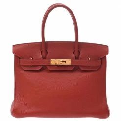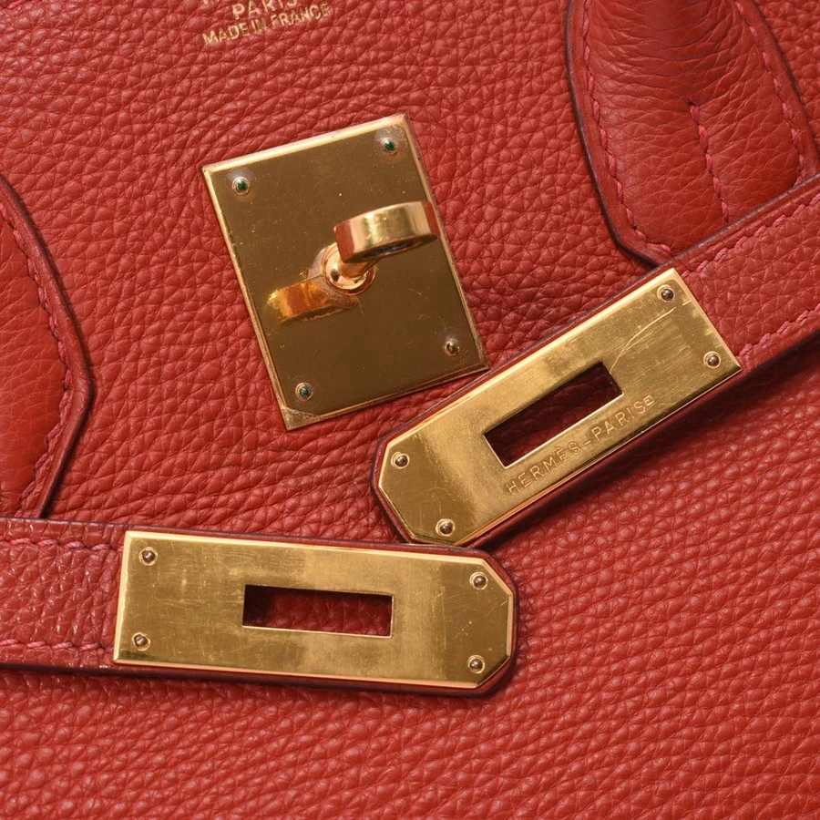 Celebrated for its skillful designs, this bag from Hermes is just what you need. A perfect complement to your outfit will be this trendy bag in red. Crafted with Togo leather, this fun piece is perfect for the fashionista in you.