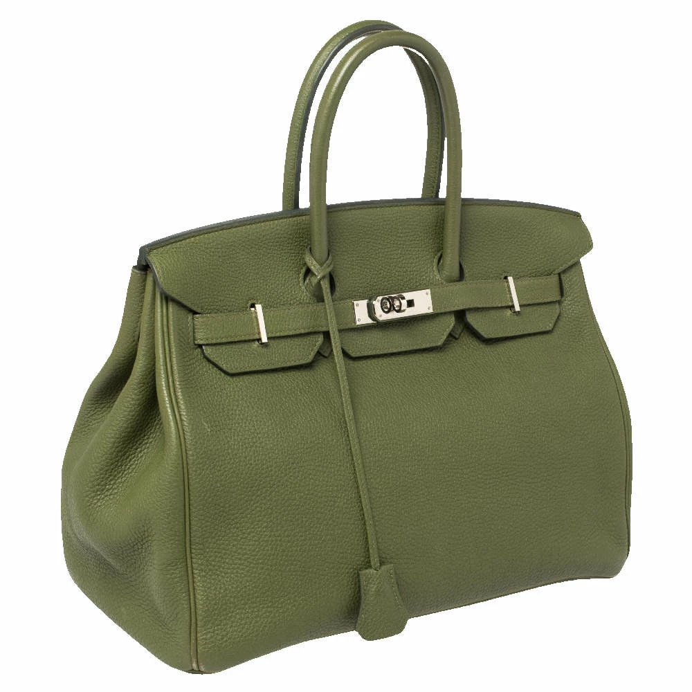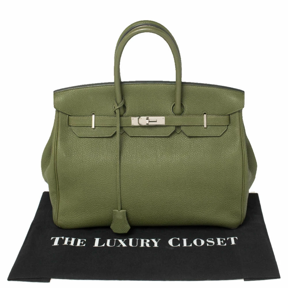 If you’ve been wishing to own an authentic Birkin, there is no better time to buy this coveted work of art than now. Here, we have this Vert Pelouse Birkin 35 just for you. Crafted in France from Togo leather, the bag features dual top handles and a matching clochette. The bag comes with palladium-finished hardware and a spacious leather-lined interior to hold all your belongings. Durable and resistant to wear, the Birkin is an investment meant to last.