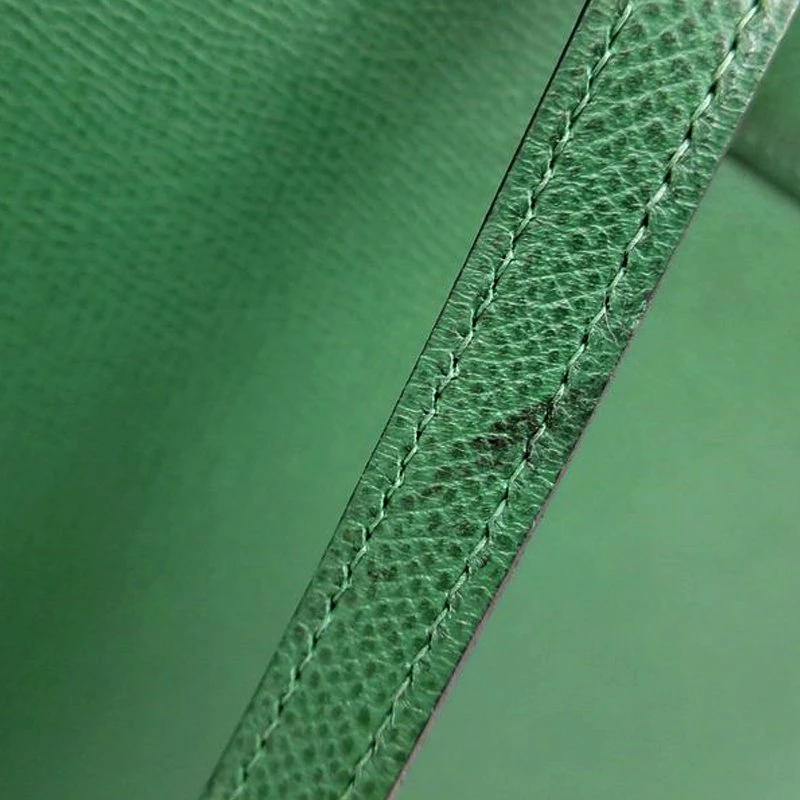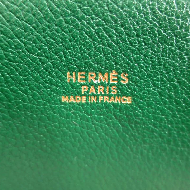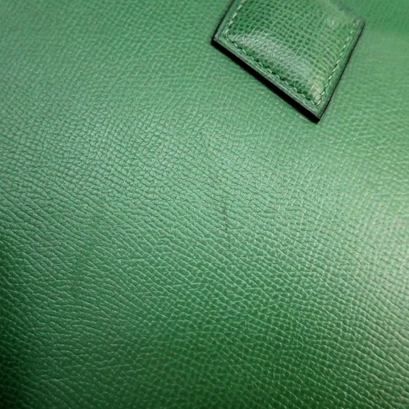 Sleek, minimal, and classy, this Hermes bag is a must have! Crafted from courchevel leather, its green color is designed with smooth exterior with top flat handles and a leather flap belt. The bag comes with a gold-tone logo on the front and a leather lined interior to comfortably carry your daily essentials.
