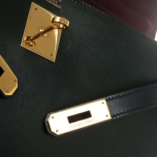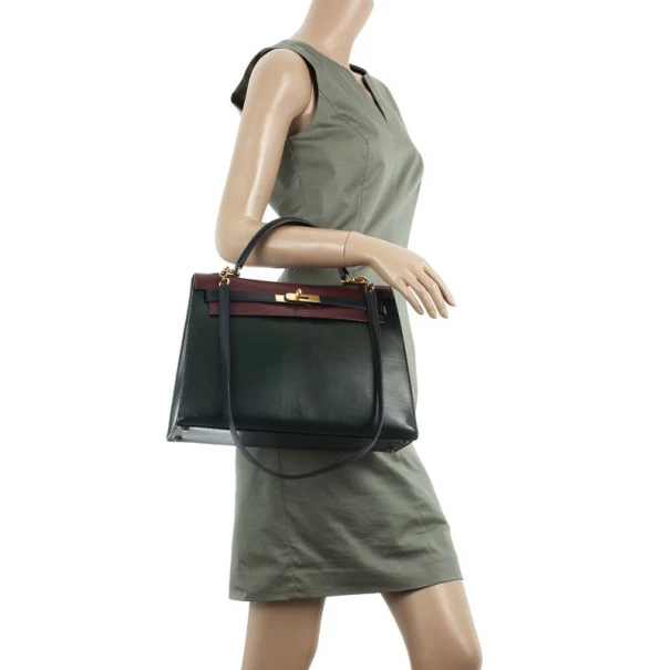 Hermes Vintage Tricolor Box Calf Kelly 32 For Women