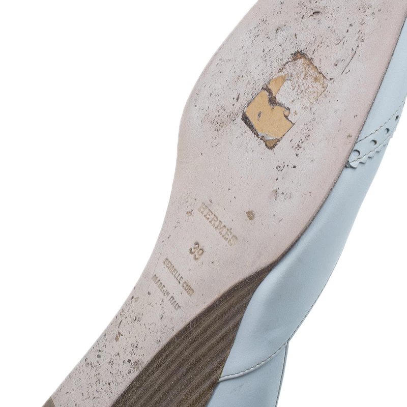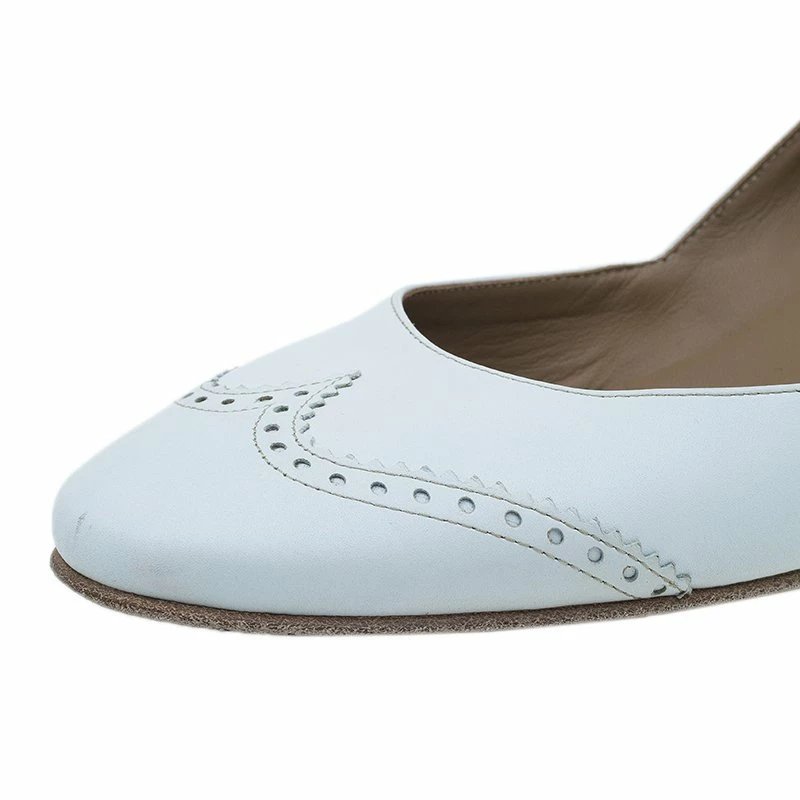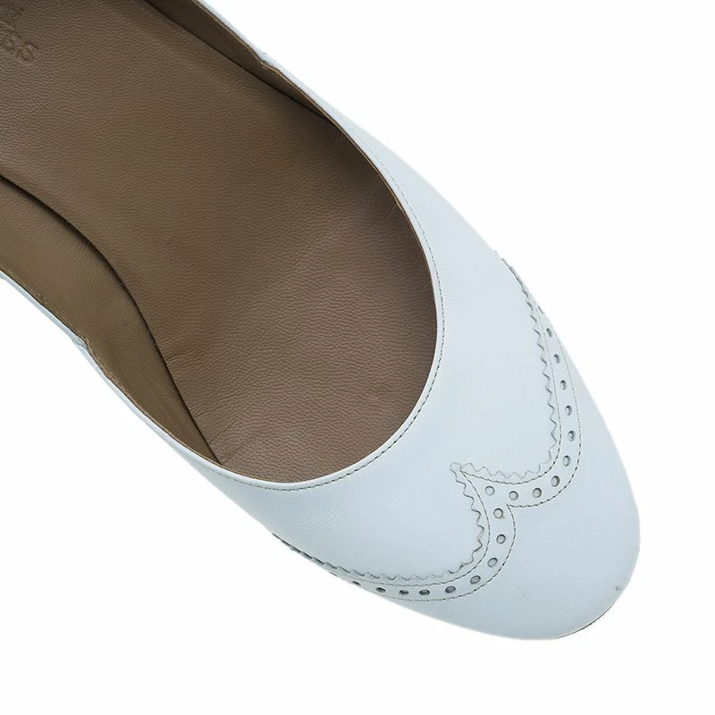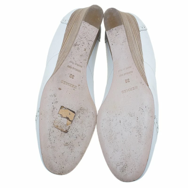 Perfect for everyday wear, are these Hermes Wedge Pumps. Crafted from white leather, they are adorned with brogue detailing, adding to their classy look. They have rounded toe caps and 5.5cm heels. Lined with leather, they carry Hermes labeled insoles.