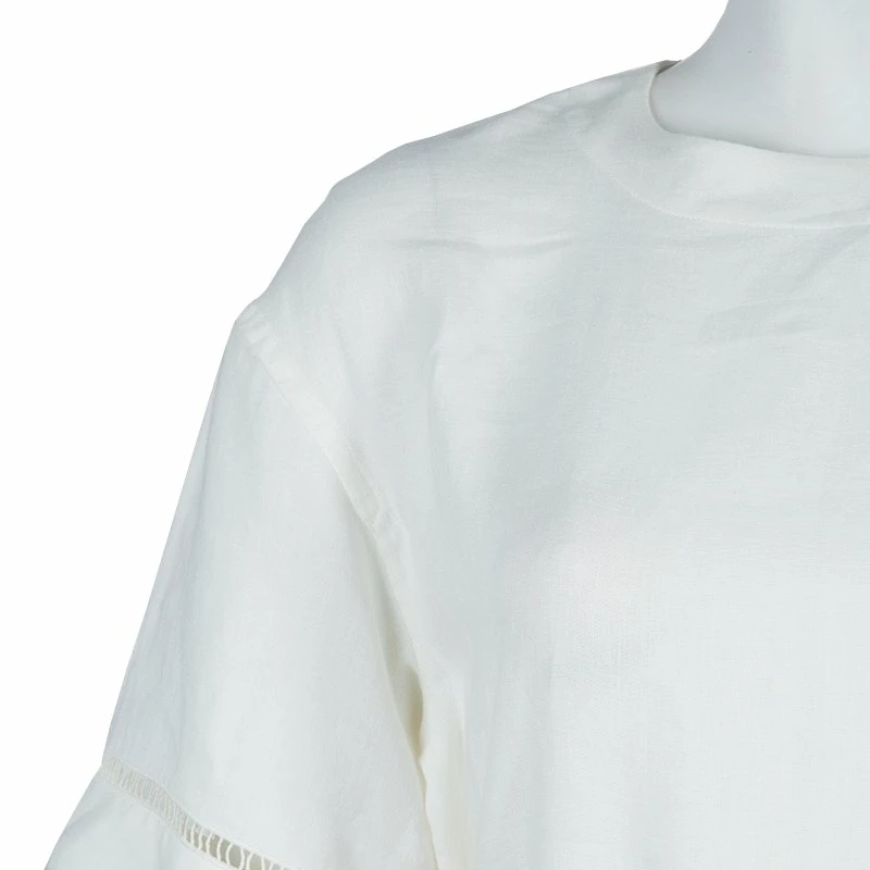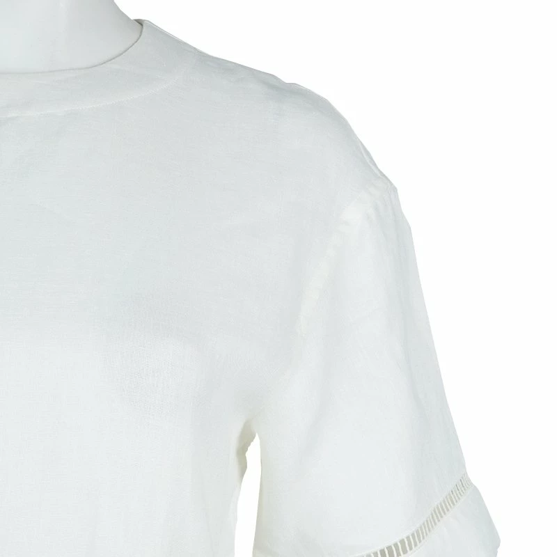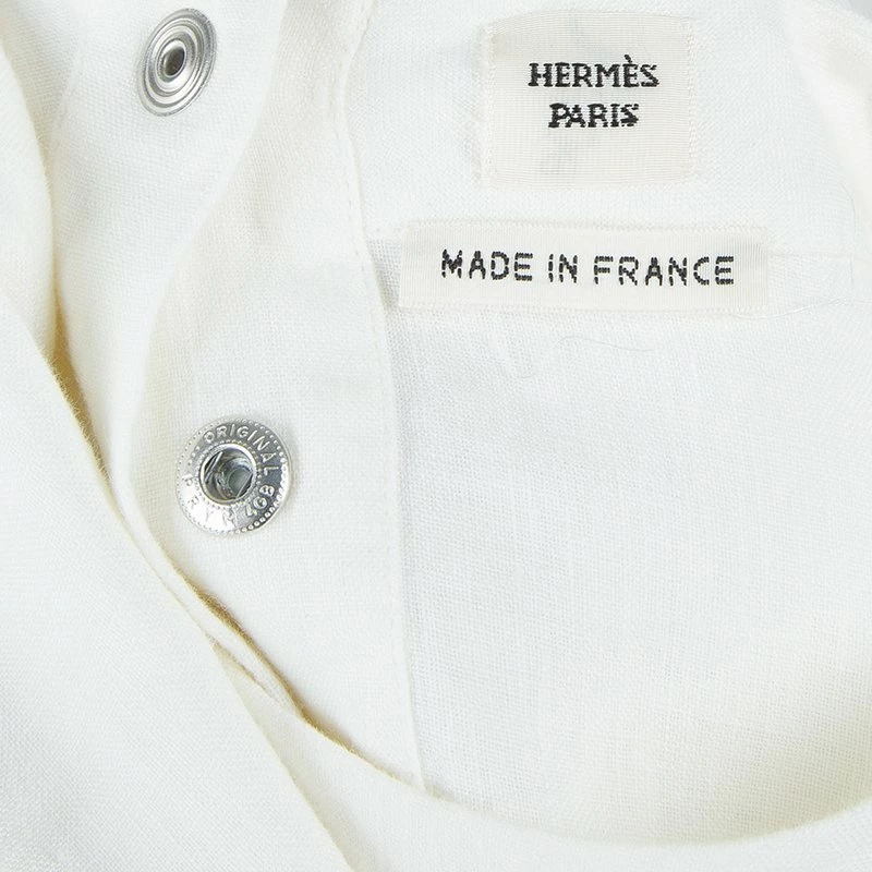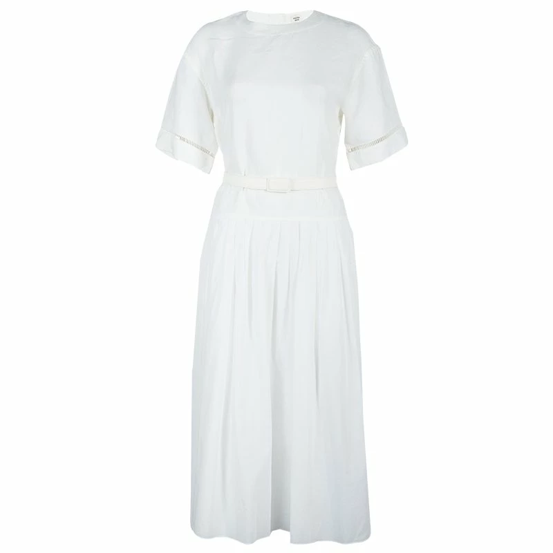 This opulent and adorable dress coming from Hermes will offer you a style headed look. Crafted from cotton-linen, it features a perfect round neck pattern and well suited short sleeves. This dress is accessorized with a waist belt and pleated bottom, It profiles rear button closures.