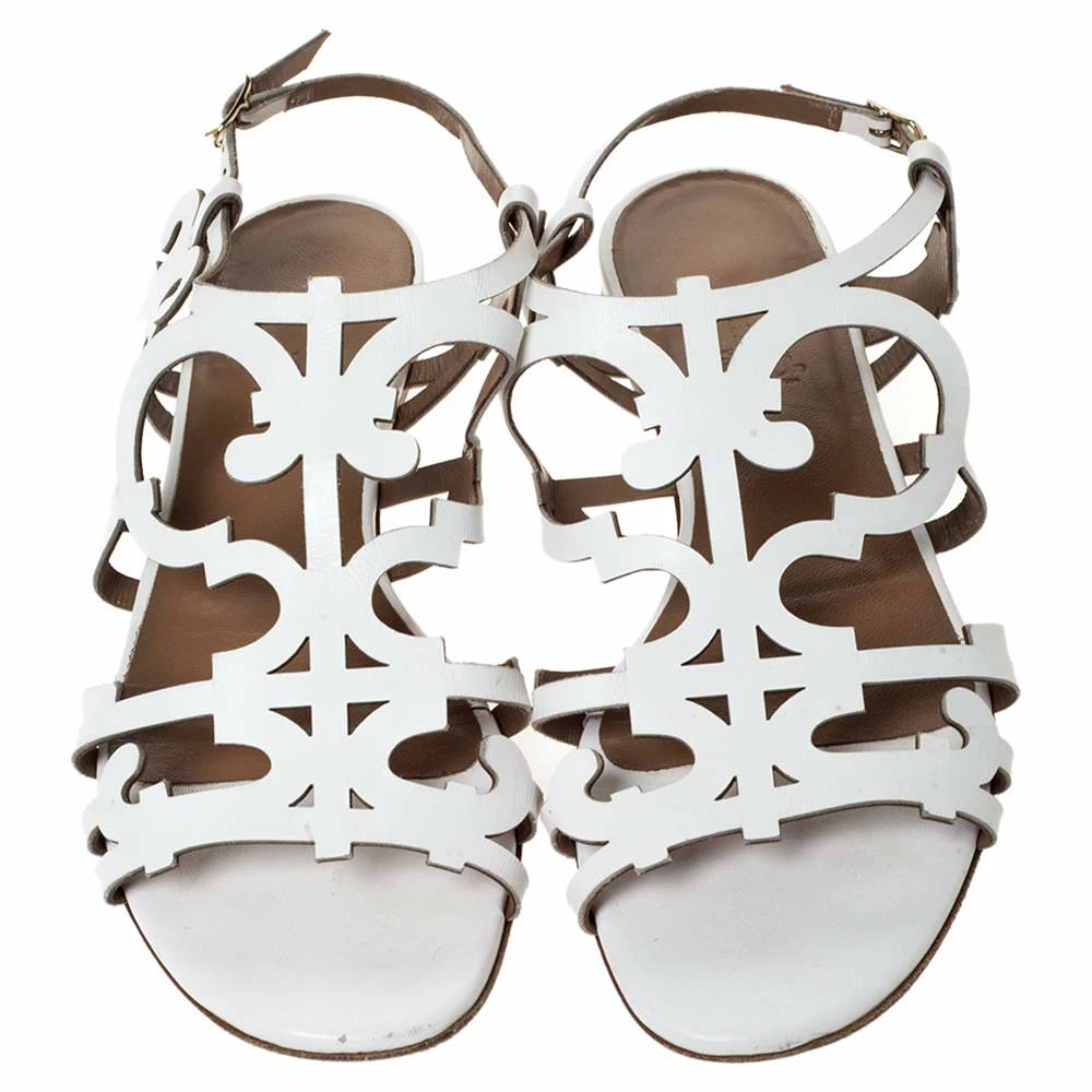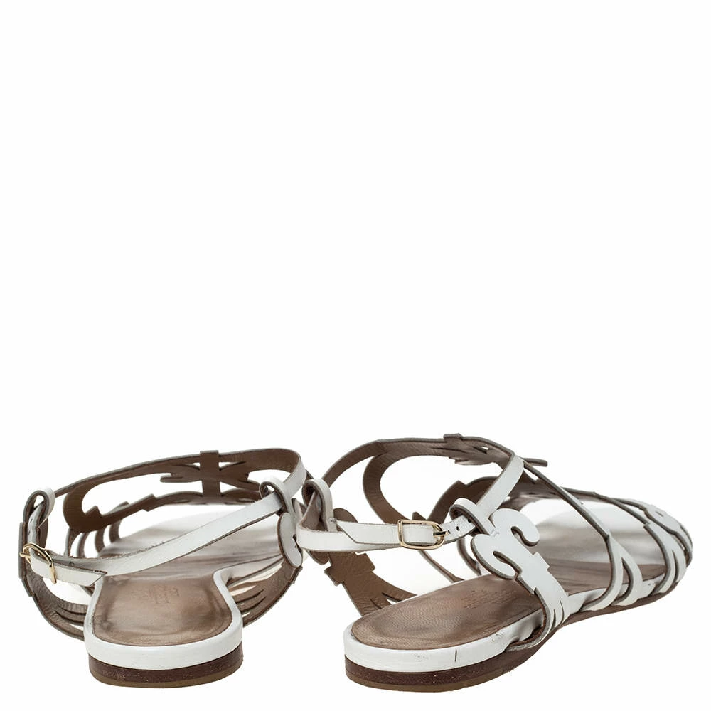 These flats crafted from white leather are characterised by the wonderful cutout design all over. They are meant to frame your feet in a beautiful manner. This pair from the house of Hermes is a fine blend of comfort and easy style.