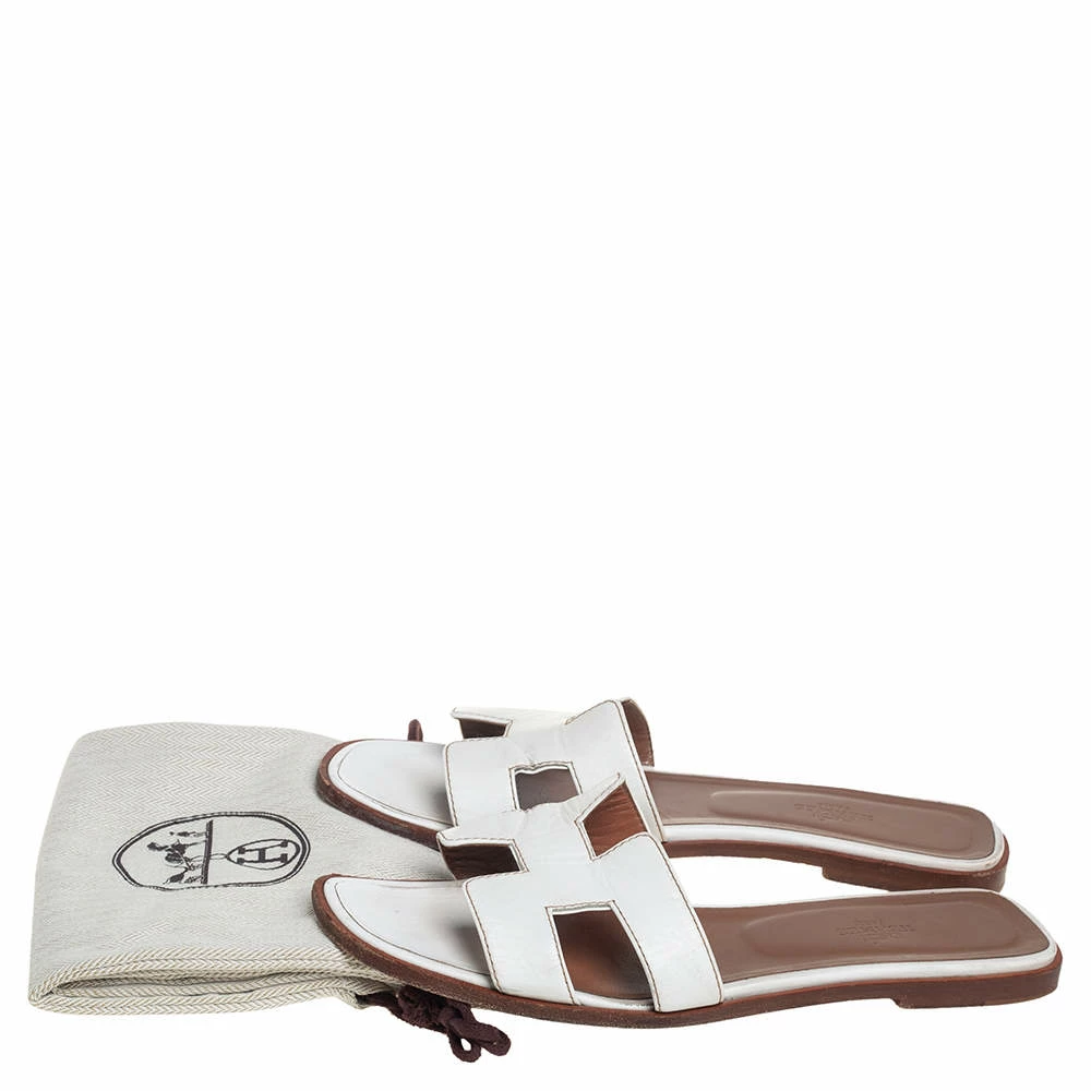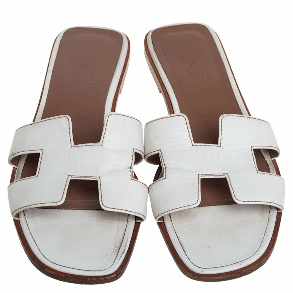 Put your best foot forward this season in these pretty Hermés sandals. These white Oran sandals have been crafted from leather in Italy and they feature the iconic H on the vamps as well as insoles meant to provide comfort at every step. These sandals are sure to attract admirers!