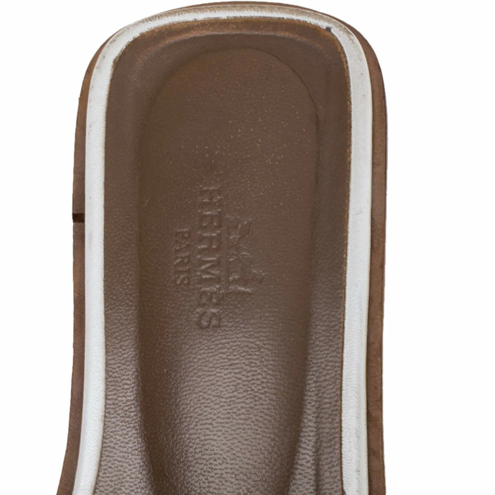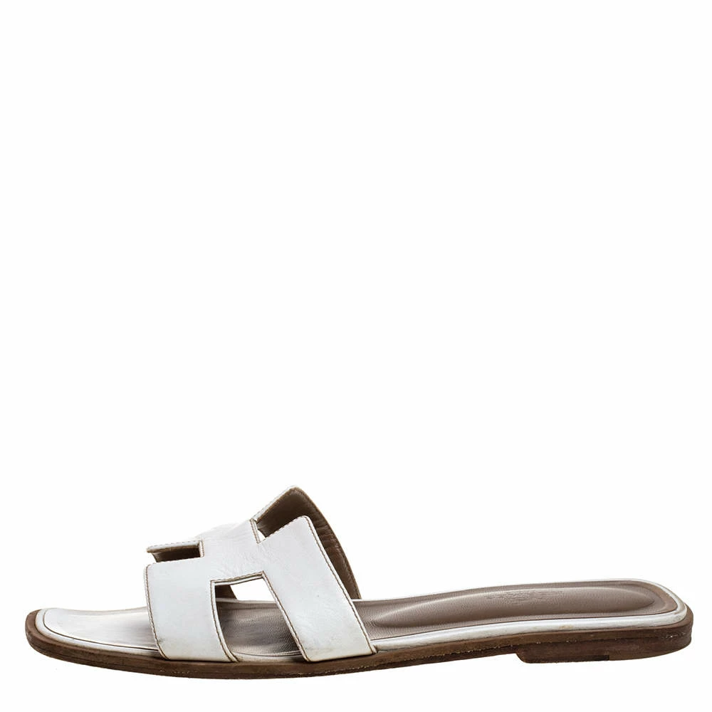 Put your best foot forward this season in these pretty Hermes sandals. These white Oran sandals have been crafted from leather in Italy and they feature the iconic H on the vamps as well as insoles meant to provide comfort at every step. These sandals are sure to attract admirers!