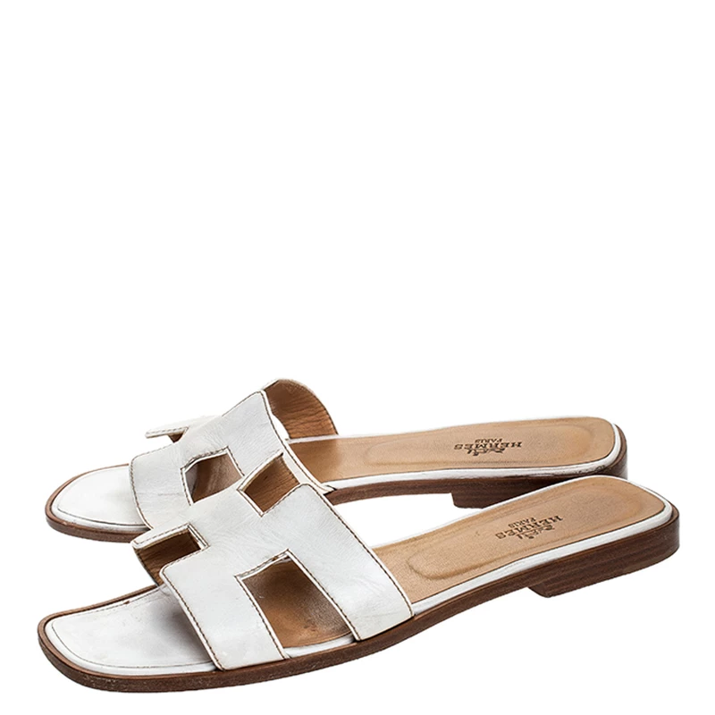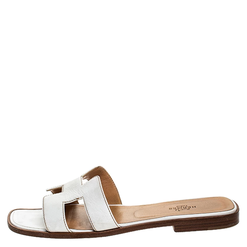 Put your best foot forward this season in these pretty Hermes sandals. These white Oran sandals have been crafted from leather in Italy and they feature the iconic H on the vamps as well as insoles meant to provide comfort at every step. These sandals are sure to attract admirers!