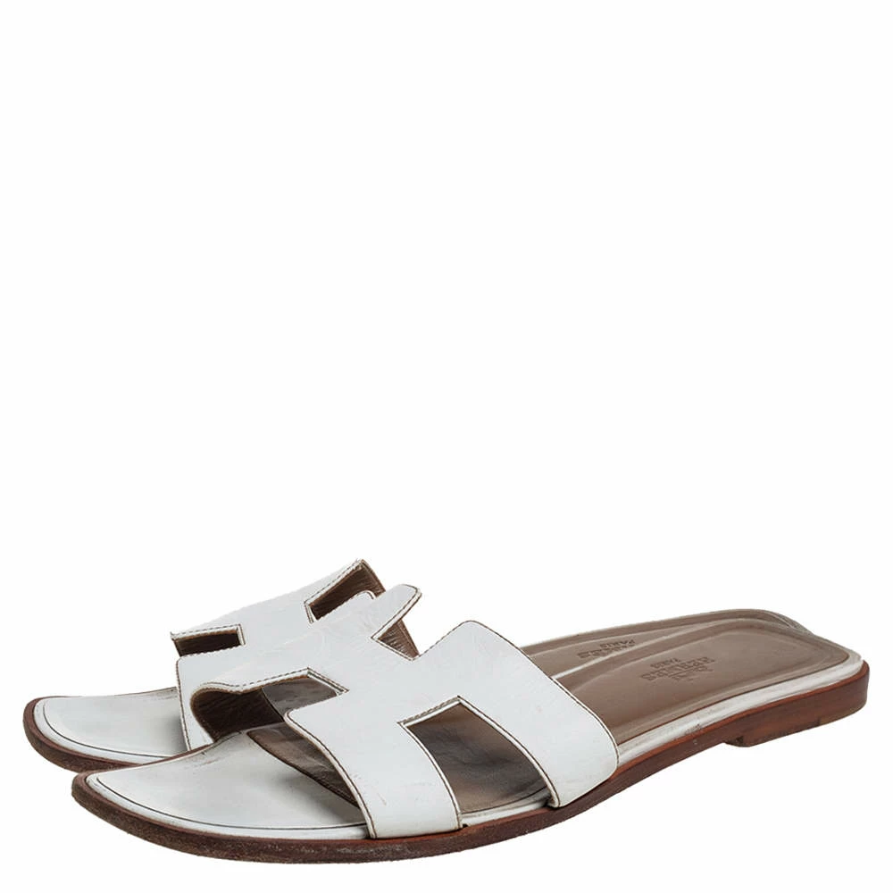 Put your best foot forward this season in these pretty Hermés sandals. These white Oran sandals have been crafted from leather in Italy and they feature the iconic H on the vamps as well as insoles meant to provide comfort at every step. These sandals are sure to attract admirers!