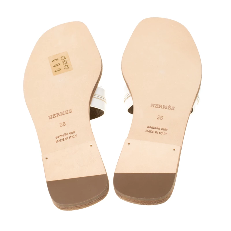 Put your best foot forward this season in these pretty Hermes sandals. These white Oran sandals have been crafted from leather in Italy and they feature the iconic H on the vamps as well as insoles meant to provide comfort at every step. These sandals are sure to attract admirers!