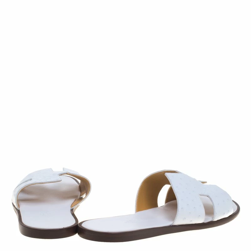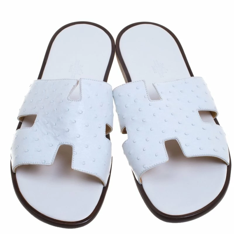 Hermes is a brand that epitomizes art and all their designs have a luxurious blend of comfort and style. These white Izmir sandals have been crafted from exotic leather in Italy and feature the iconic H on the vamp, making it easy to slip on over all your casual outfits.