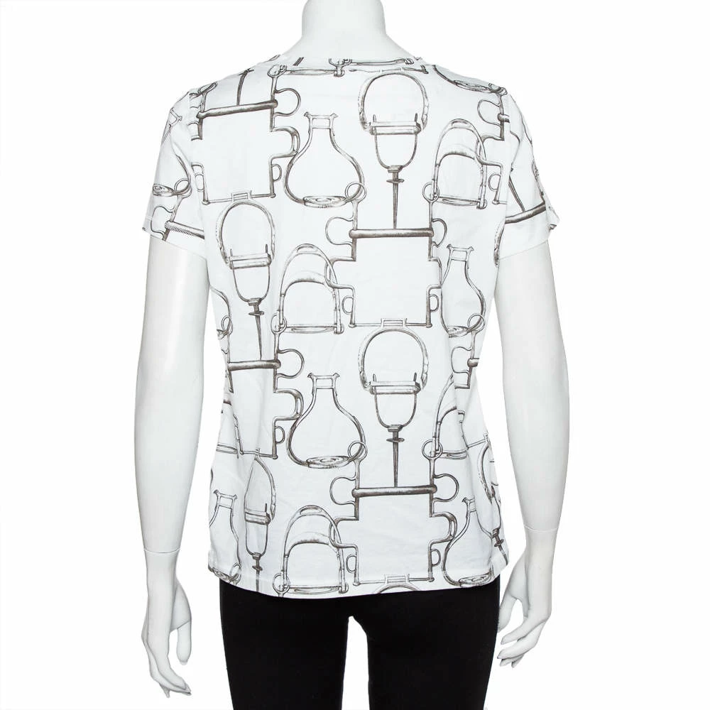 Look your casual best in this cool T-shirt by Hermes. Made from 100% cotton, this white creation is styled with a Saddle print on the front. It has short sleeves and a crew neck. Wear it with denim and sneakers.