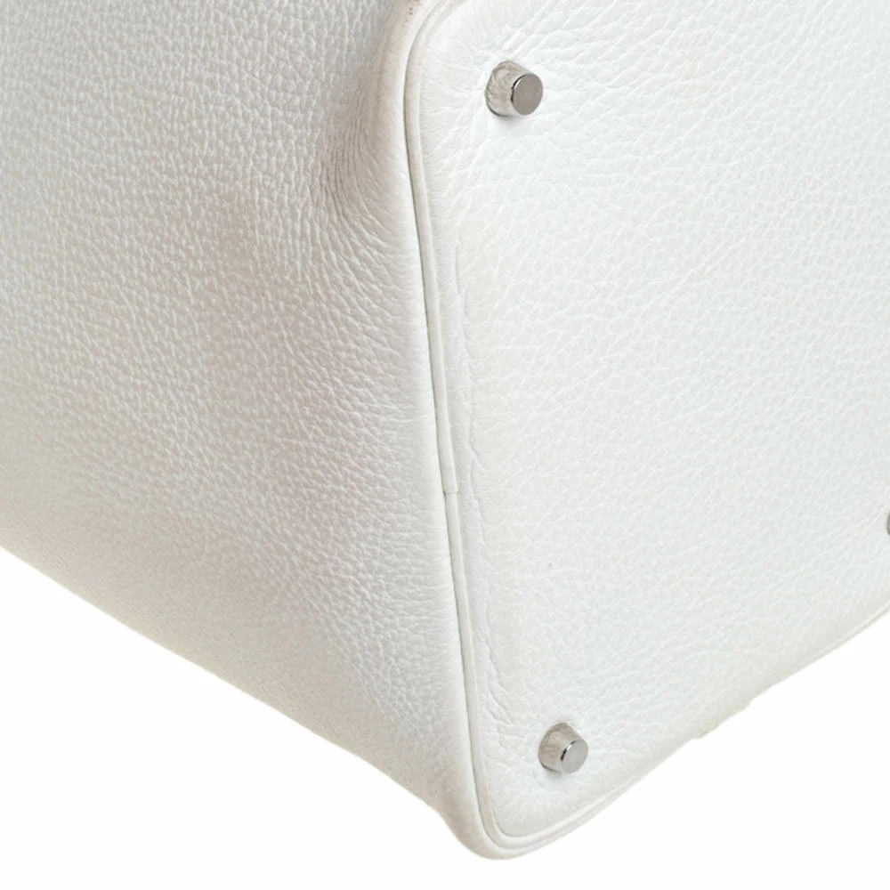 Wonderfully crafted from Togo leather, this Picotin from Hermes is a creation for people who love a perfect blend of luxury and style. It comes in a splendid white hue, and it sits in a relaxed shape with two handles and a spacious interior for your belongings. Armed with protective metal feet as a finishing touch, this bag is ideal for everyday usage.
