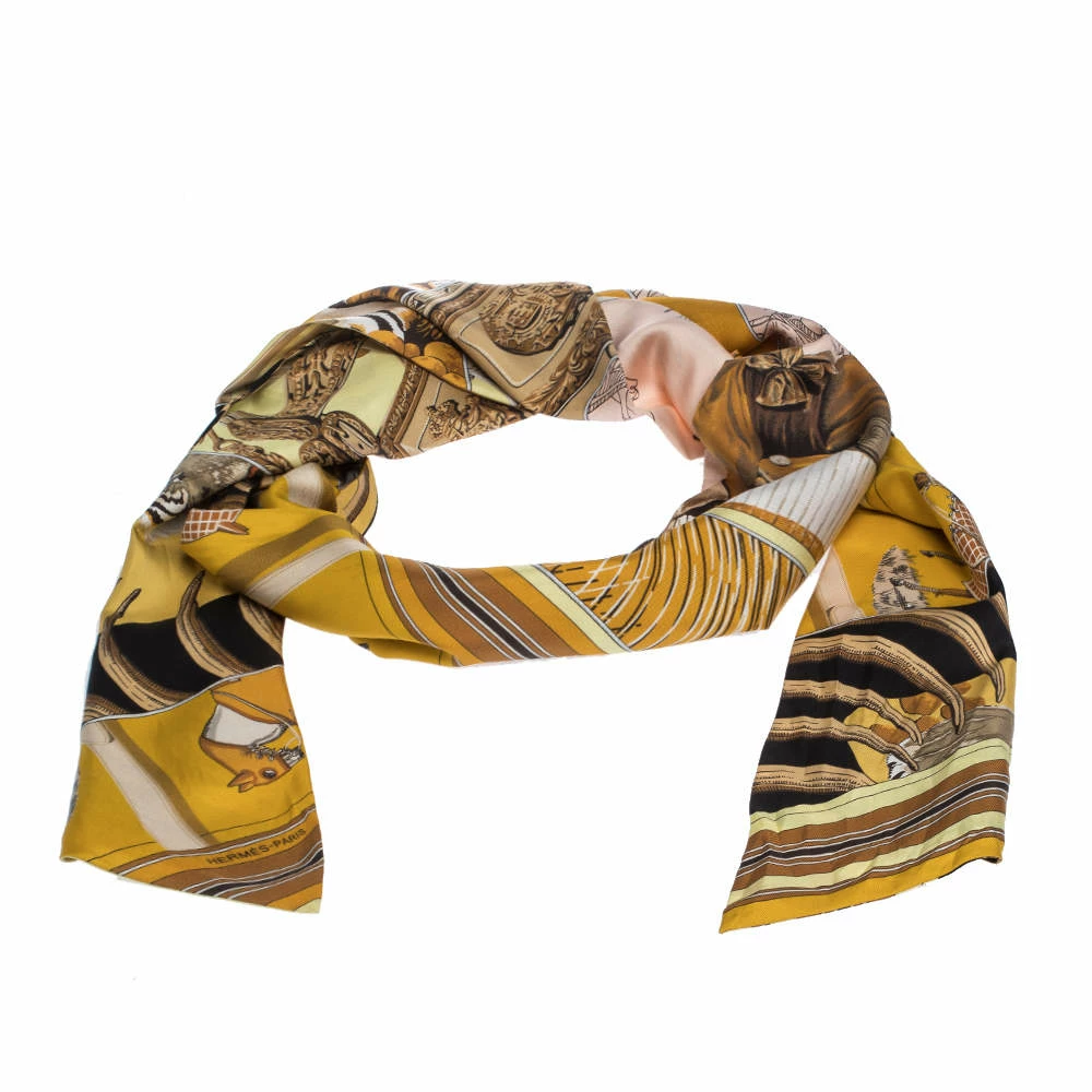 This fabulous Twilly scarf by Hermès complements almost all your outfits and looks pretty whether you tie it around your hair or your wrist. Cut from silk, this scarf is adorned all over with an interesting print, fashioned in a patchwork style.