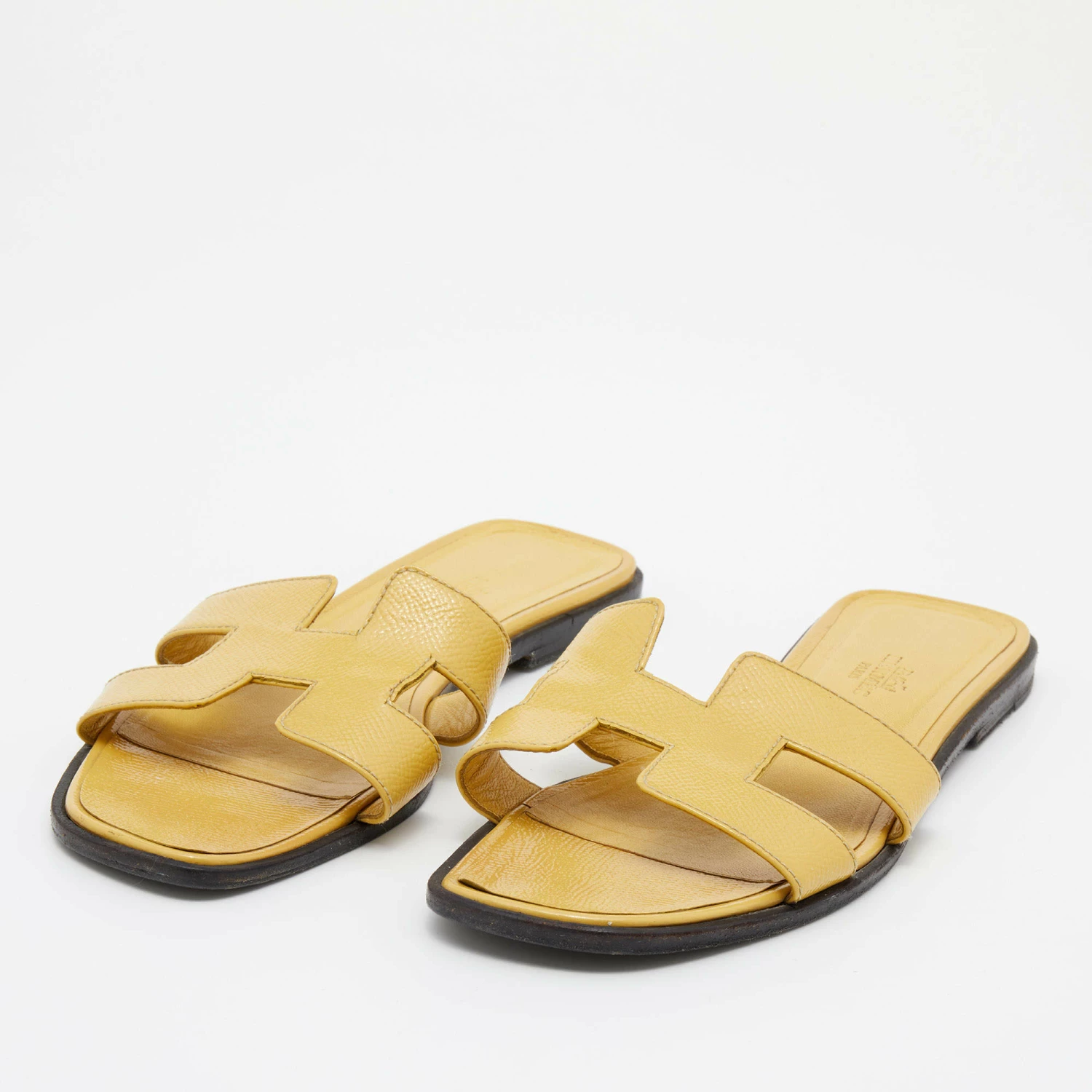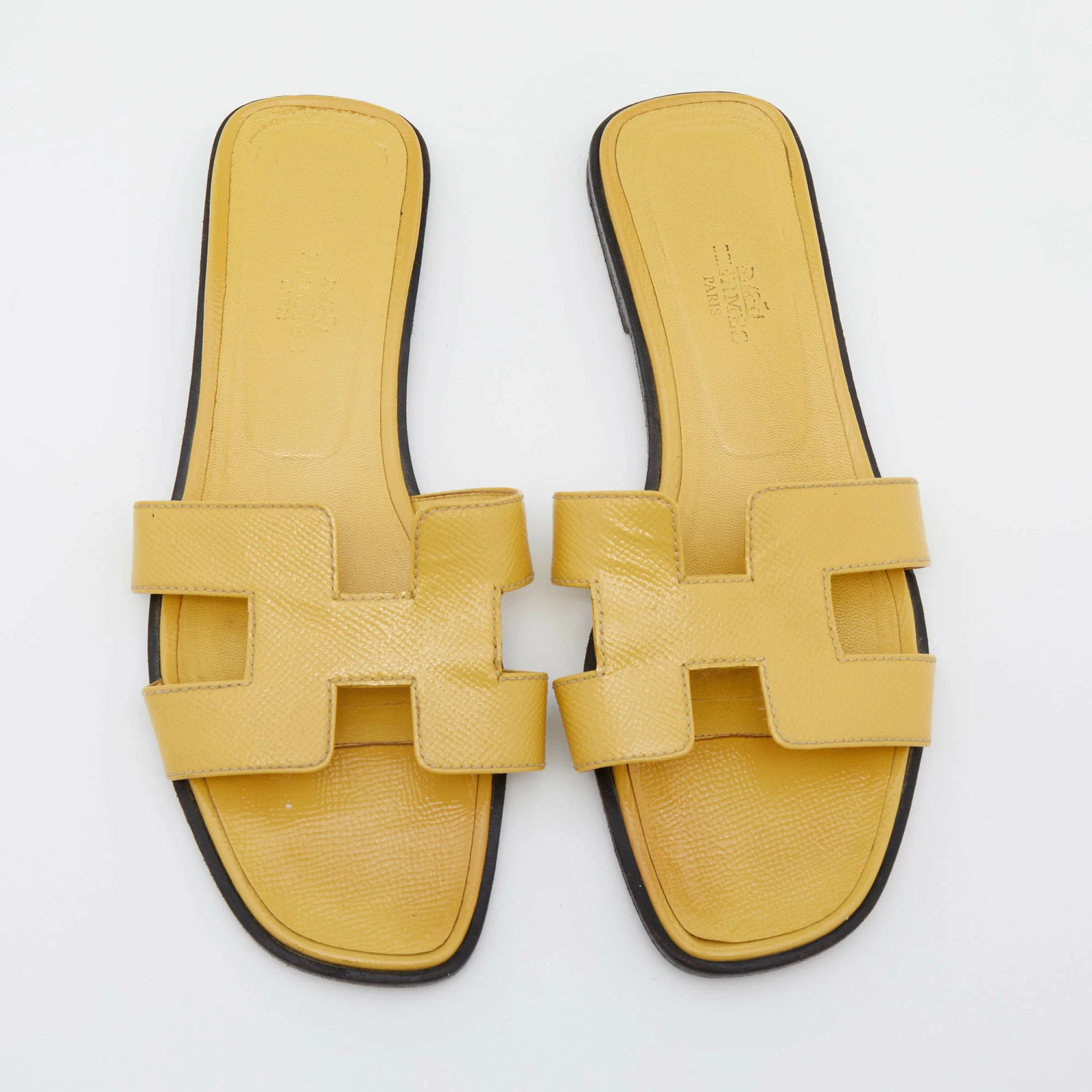Add the iconic Hermès Oran sandals to your shoe collection with this pair. These Oran flat slides have been crafted in Italy and they feature the iconic H on the vamps and lined insoles in leather to provide comfort at every step.