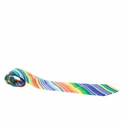 This suave silk tie from Hermes is perfect for the dapper man. Designed with a diagonal rainbow striped pattern, this multicolor tie comes with the brand label keeper loop at the back. The tie can be styled with various outfits.