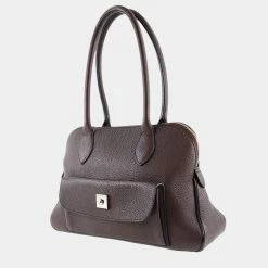 Hermes Kabak Elan PM Handbag Tote Bag Shoulder Toile Officier Leather Blue Gray P Engraved For Women